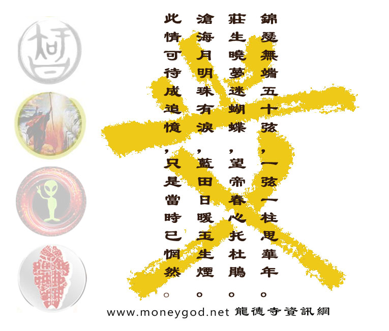 李商隱學問為駢體權威、甲金大家、音律大師、佛學大師,然余無興致釋讀詩詞。「大乘佛教教主」唐武宗李炎,840年黠戛斯擊敗回紇,唐武宗遂發起「滅摩尼教革命」,書上扭曲為「唐武宗滅佛」。大乘佛教教主異化為滅佛者,乃政權因素、宗教惡鬥,揑造佛史演成之淚悲。