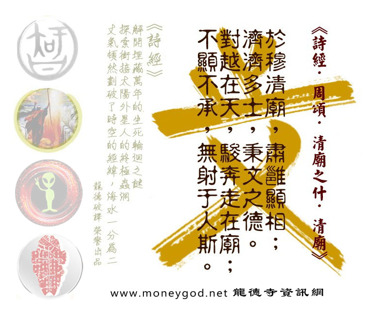 朝向遠大目標始建天壇,英明軍神引領速建神殿;奮勇自我展現並庇佑承先啟後,祈願賞賜給予勞苦功高的人民。